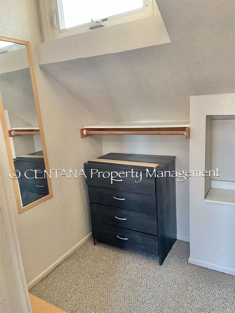 The bedroom upstairs has a large closet, and the other bedroom is on the main floor, just off of the livingroom.
